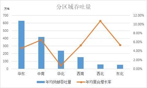 國(guó)家發(fā)展改革委民航局2017年印發(fā)《全國(guó)民用運(yùn)輸機(jī)場(chǎng)布局規(guī)劃》,根據(jù)優(yōu)化布局結(jié)構(gòu)、加密擴(kuò)能并重、服務(wù)國(guó)家戰(zhàn)略、綠色集約環(huán)保的原則,規(guī)劃布局完善華北、東北、華東、中南、西南、西北六大機(jī)場(chǎng)群。華北包括北京、天津、河北、山西、內(nèi)蒙古五地;東北包括遼寧、吉林、黑龍江三地;華東包括上海、江蘇、浙江、安徽、福建、江西、山東七地;中南包括河南、湖北、湖南、廣東、廣西、海南六地;西南包括重慶、四川、貴州、云南、西藏五地;西北包括陜西、甘肅、青海、寧夏、新疆五地。近五年來(lái),貨郵吞吐量前60位機(jī)場(chǎng)的吞吐量之和保持在全國(guó)總量的98%以上,本文根據(jù)60大機(jī)場(chǎng)的貨郵吞吐量數(shù)據(jù)研究全國(guó)機(jī)場(chǎng)的貨運(yùn)發(fā)展情況。